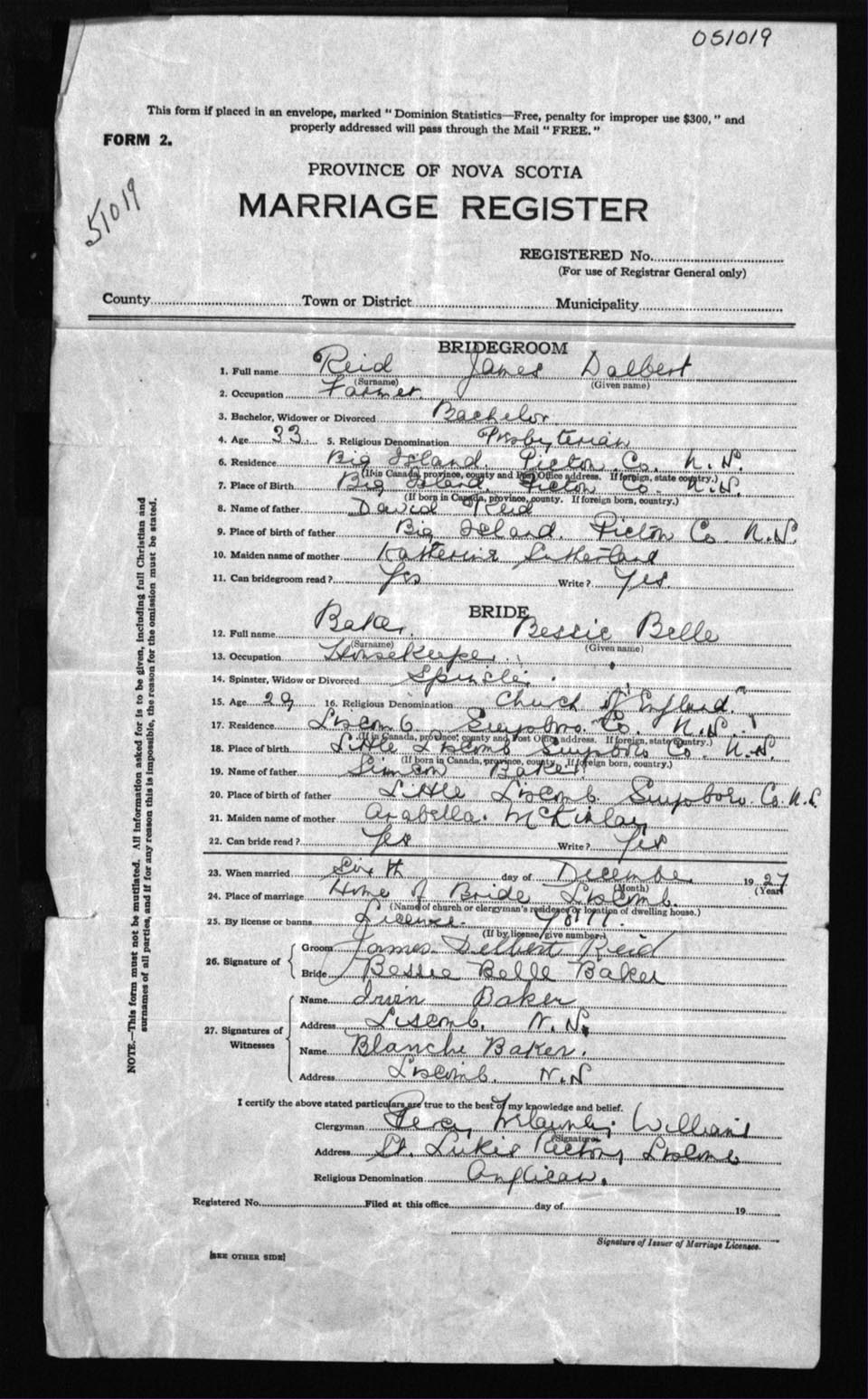 Registration: Year: 1927 number: 5119