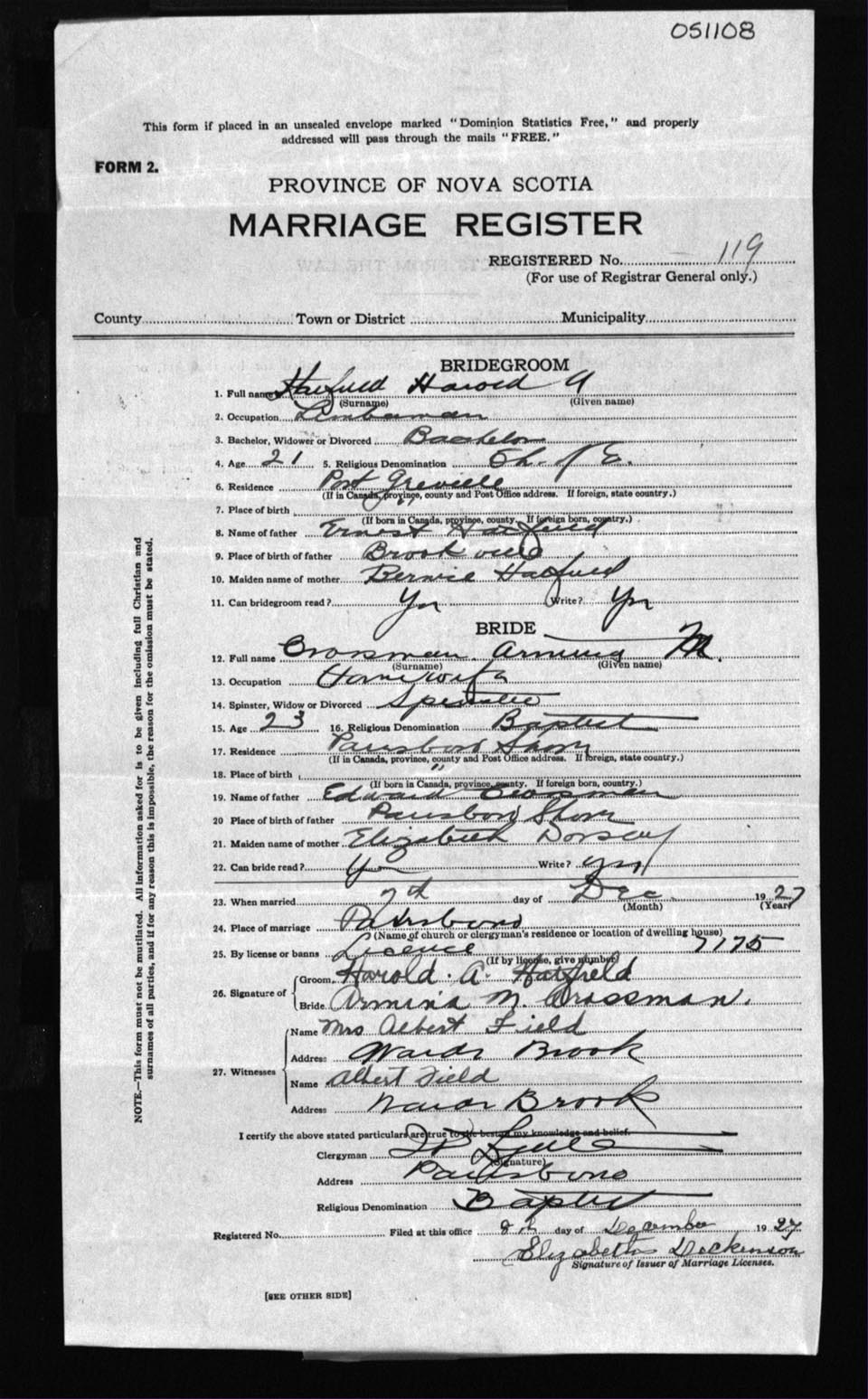 Registration: Year: 1927 number: 51108