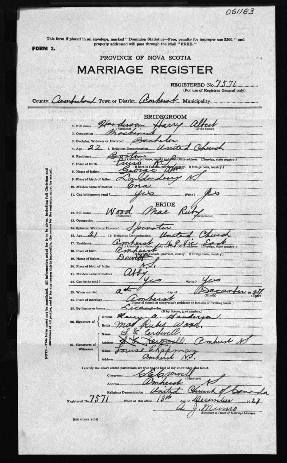Registration: Year: 1927 number: 51183