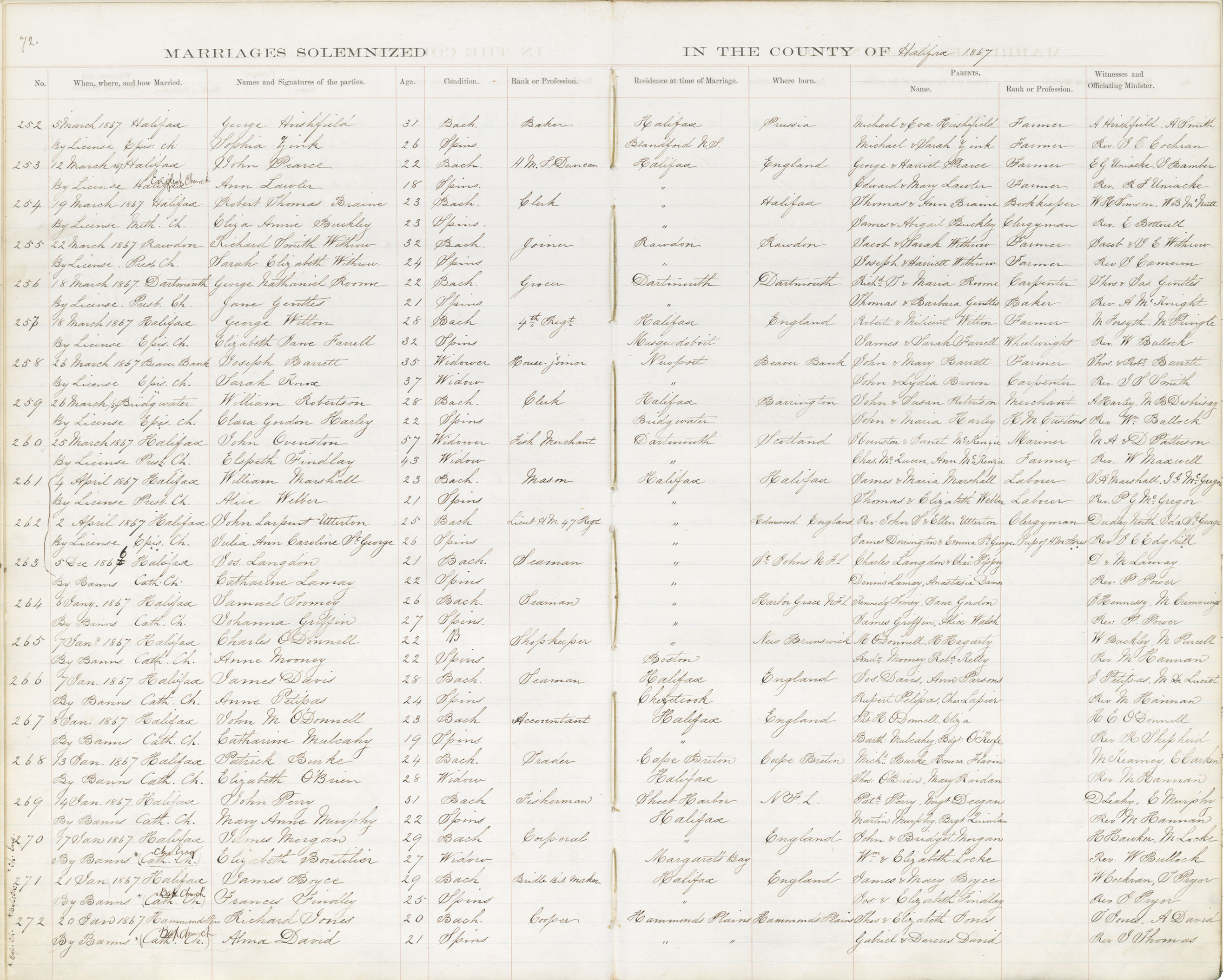 Registration: Year: 1867 book: 1815 page: 72 number: 252
