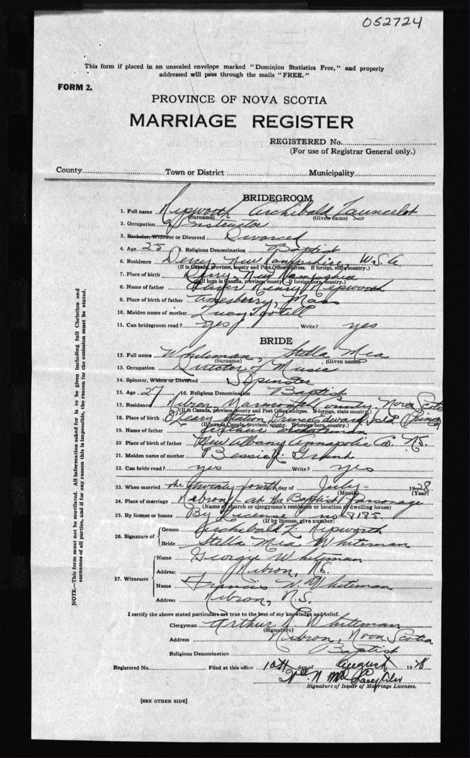 Registration: Year: 1928 number: 52724