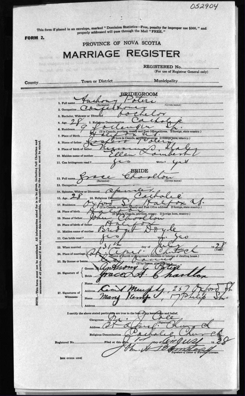Registration: Year: 1928 number: 52904