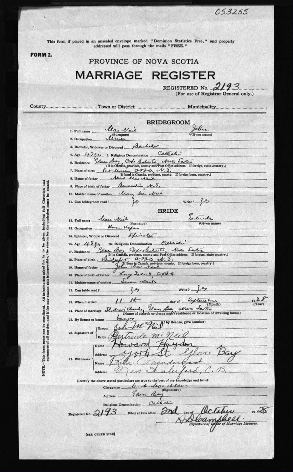 Registration: Year: 1928 number: 53255