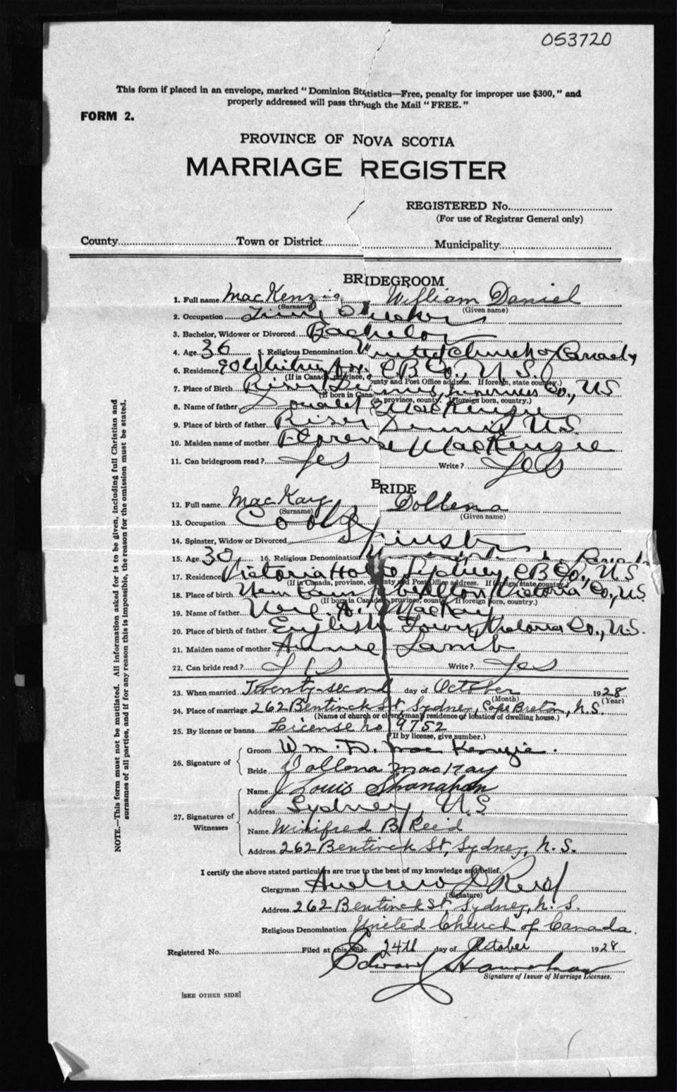 Registration: Year: 1928 number: 53720