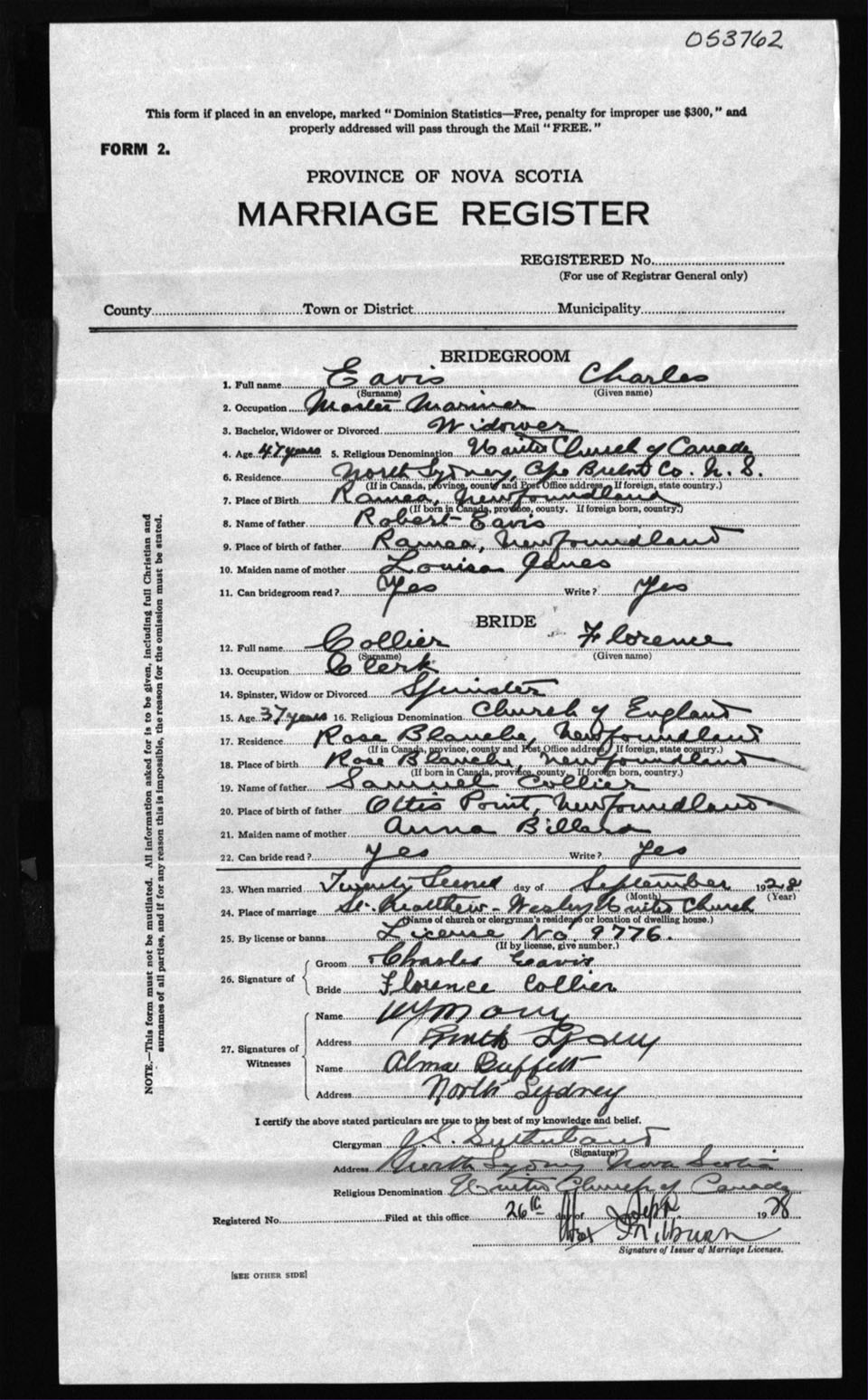 Registration: Year: 1928 number: 53762