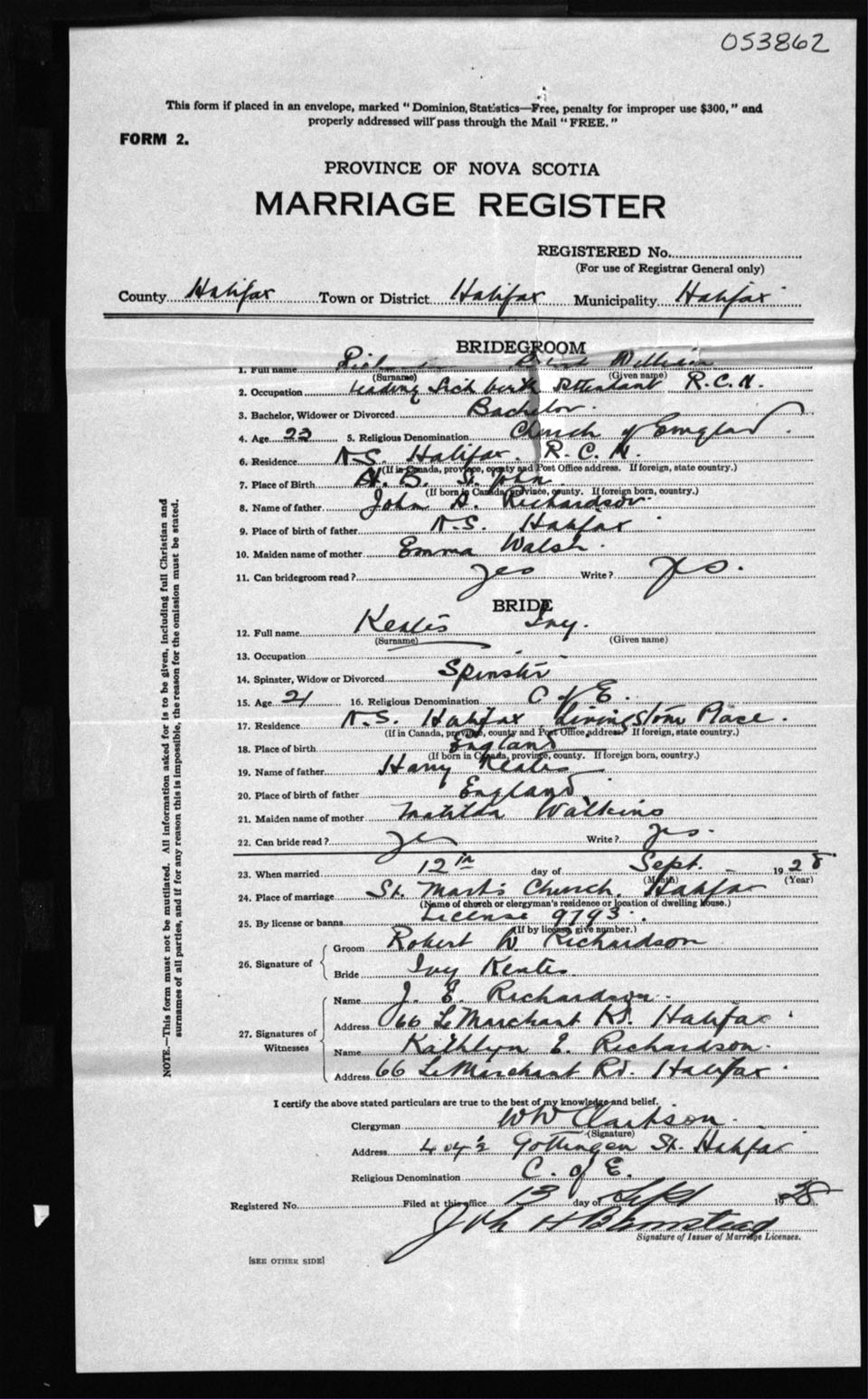 Registration: Year: 1928 number: 53862