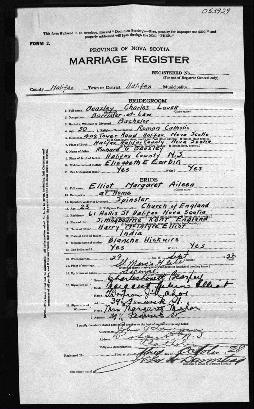 Registration: Year: 1928 number: 53929