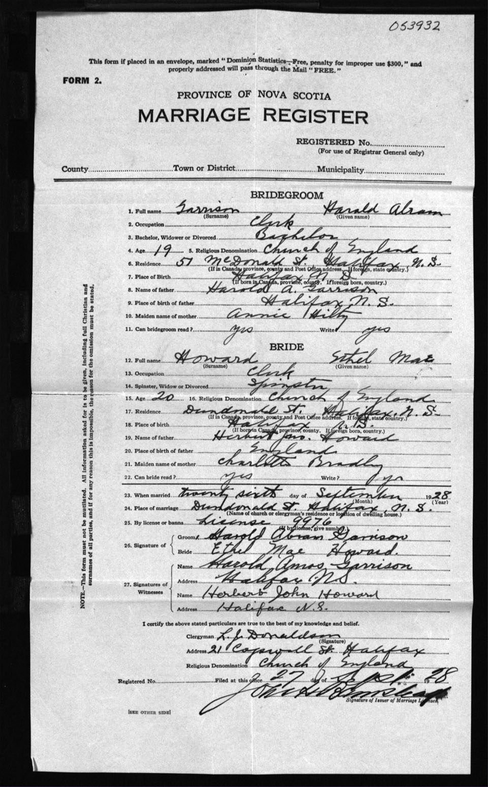 Registration: Year: 1928 number: 53932