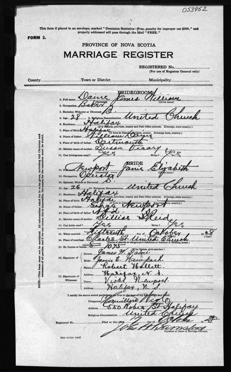 Registration: Year: 1928 number: 53952