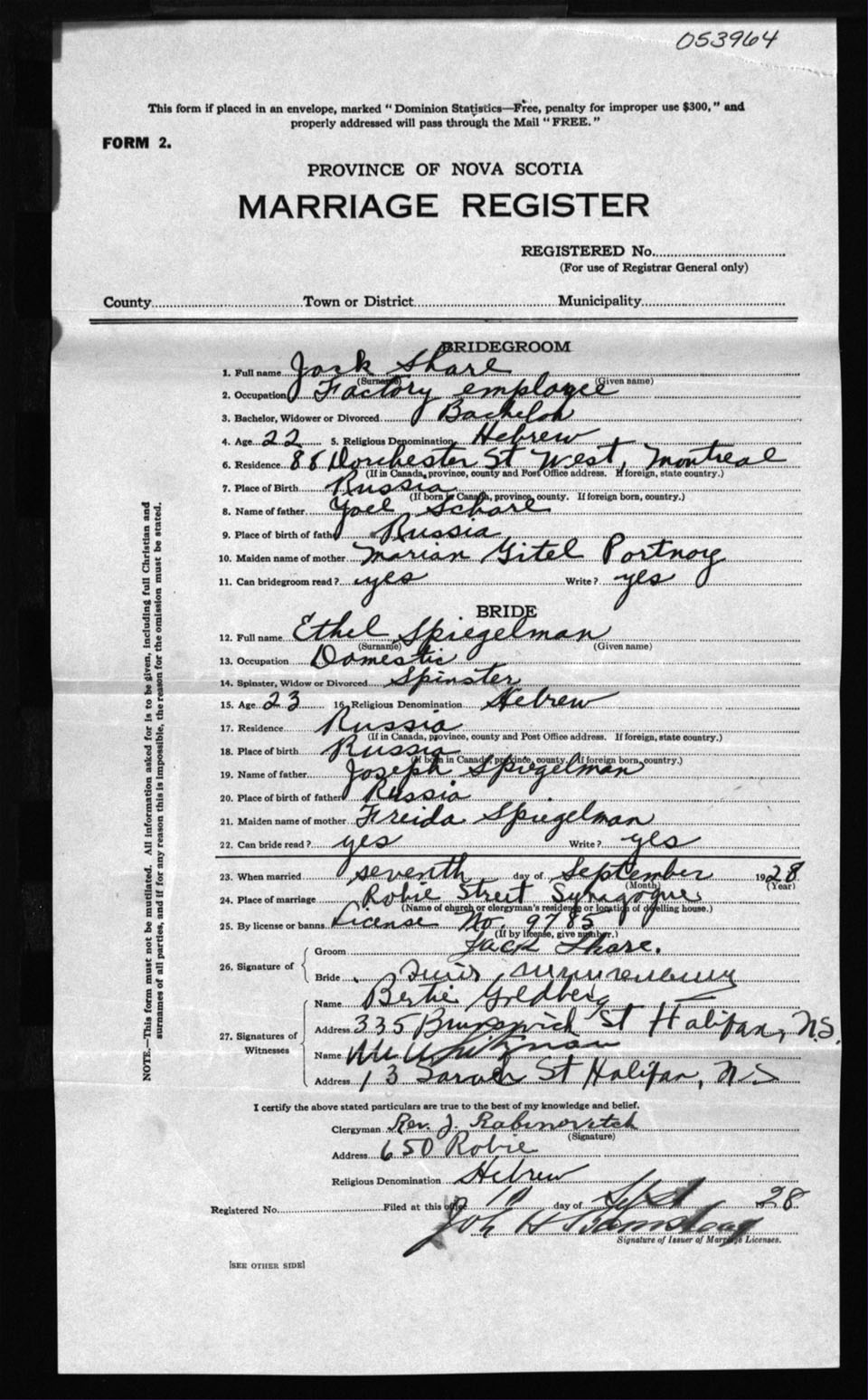 Registration: Year: 1928 number: 53964