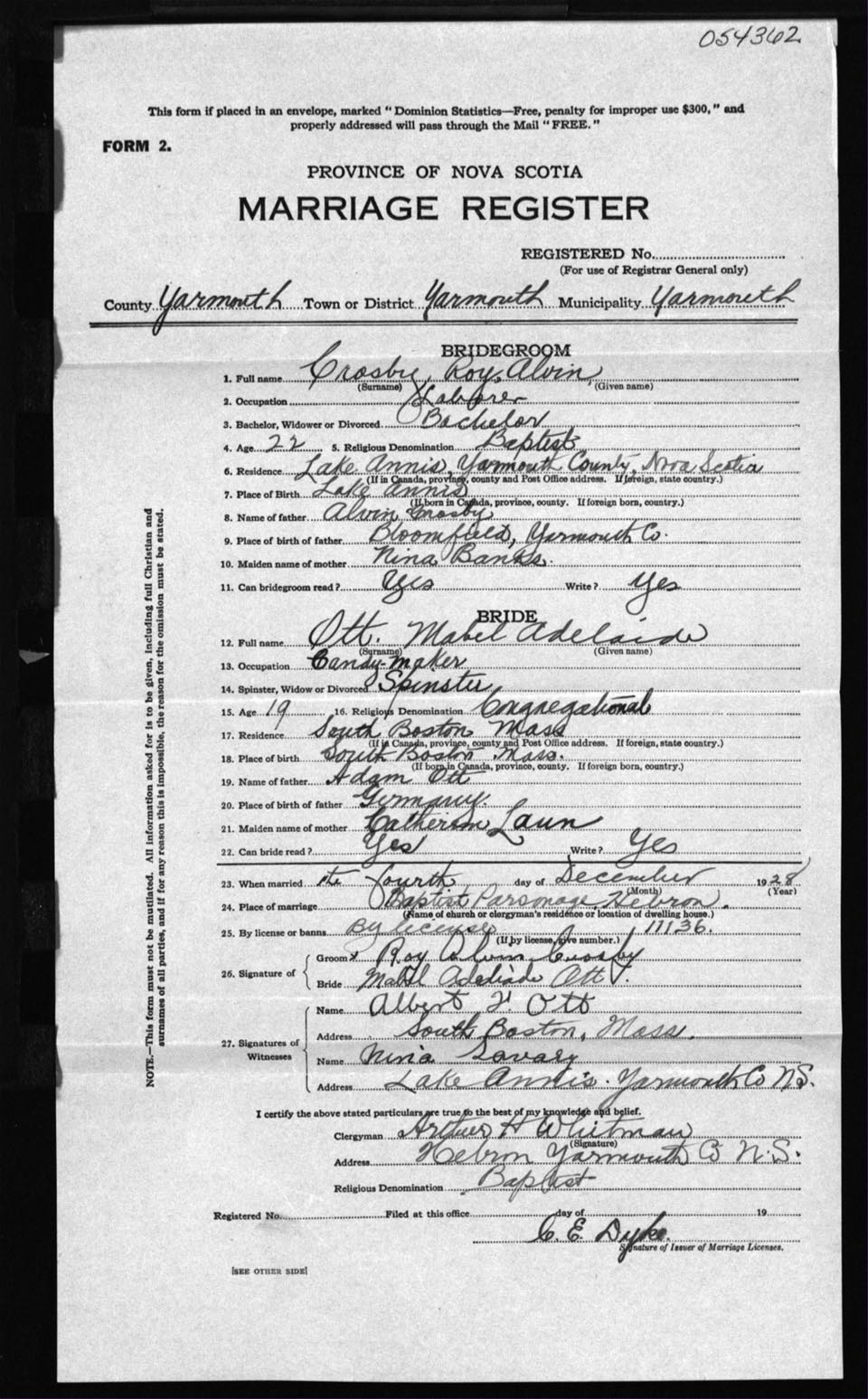 Registration: Year: 1928 number: 54362