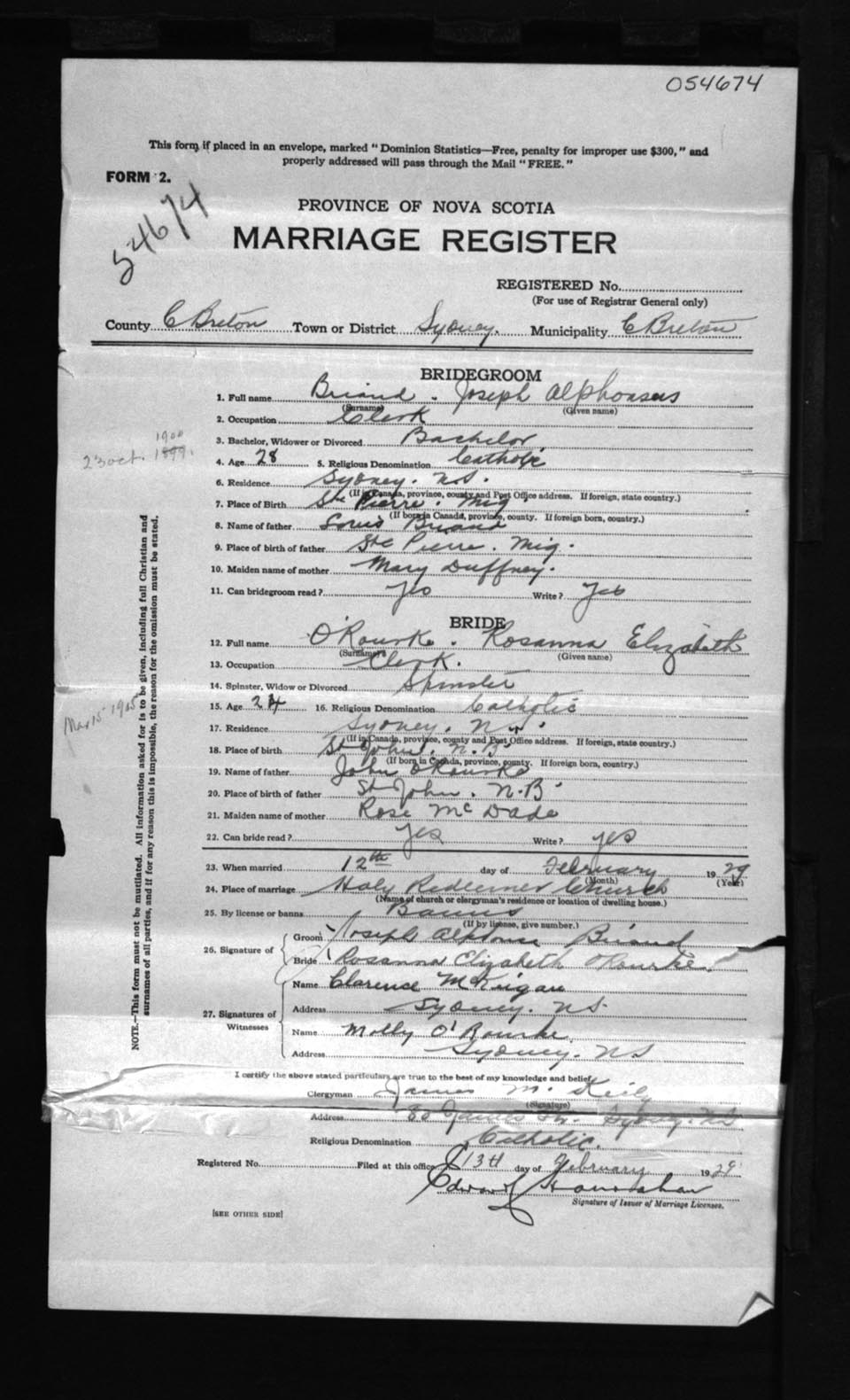 Registration: Year: 1929 number: 54674
