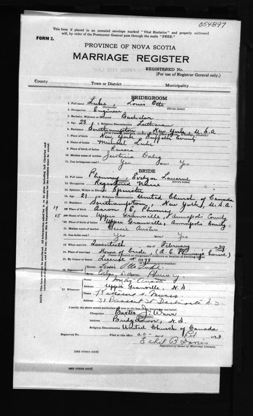 Registration: Year: 1929 number: 54897