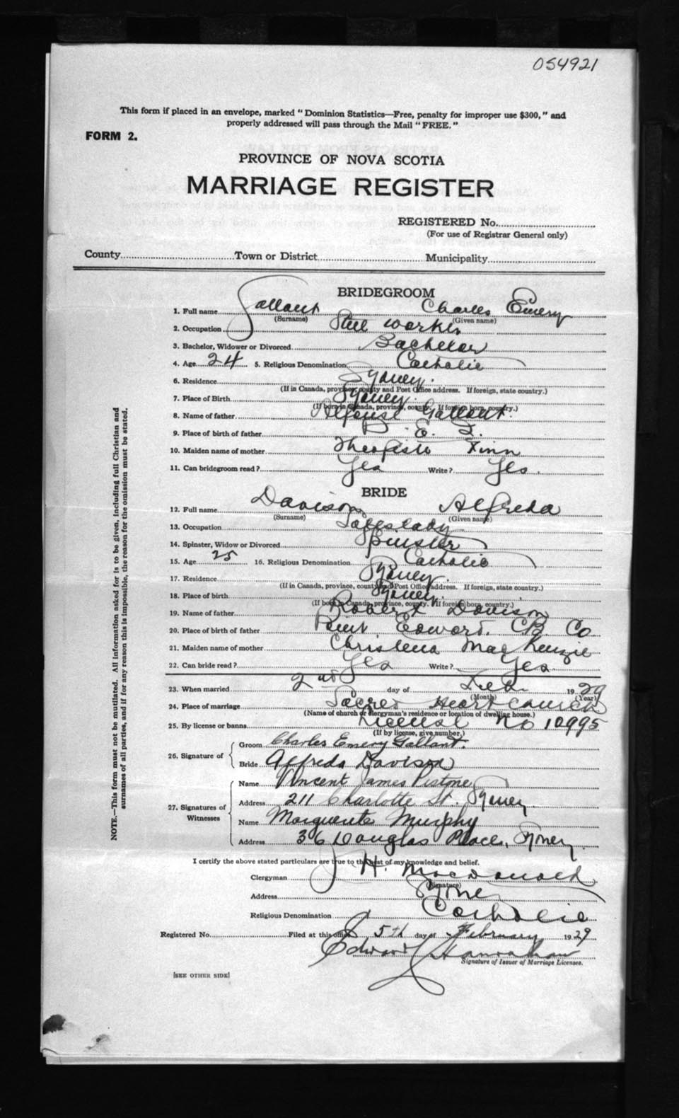 Registration: Year: 1929 number: 54921