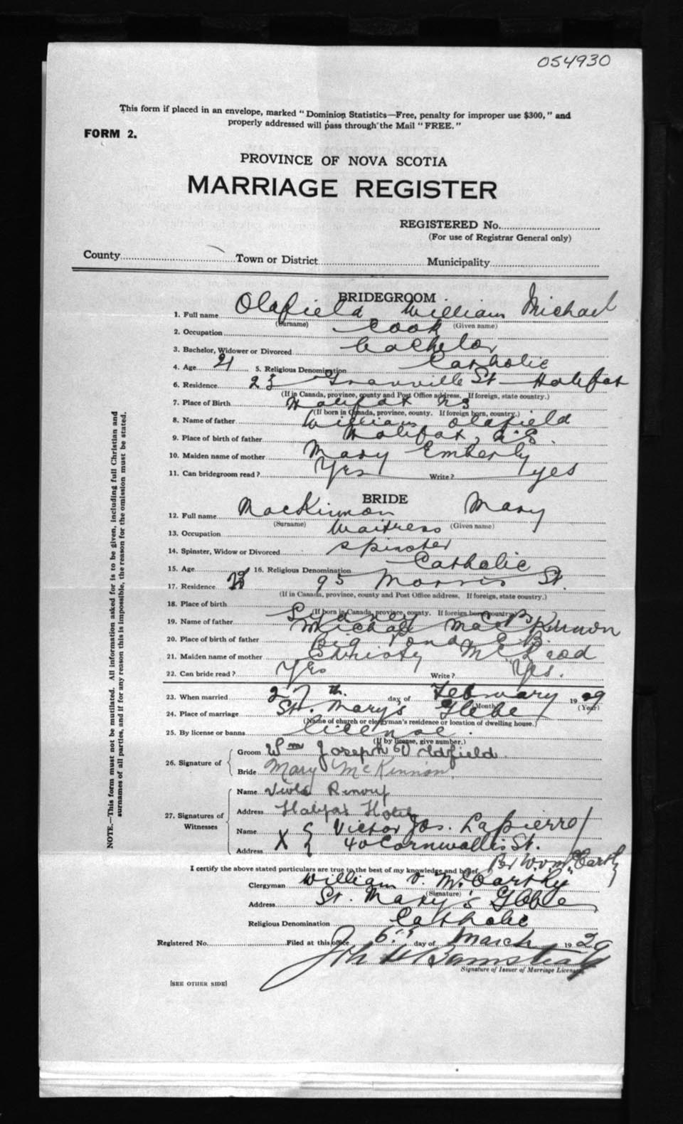 Registration: Year: 1929 number: 54930