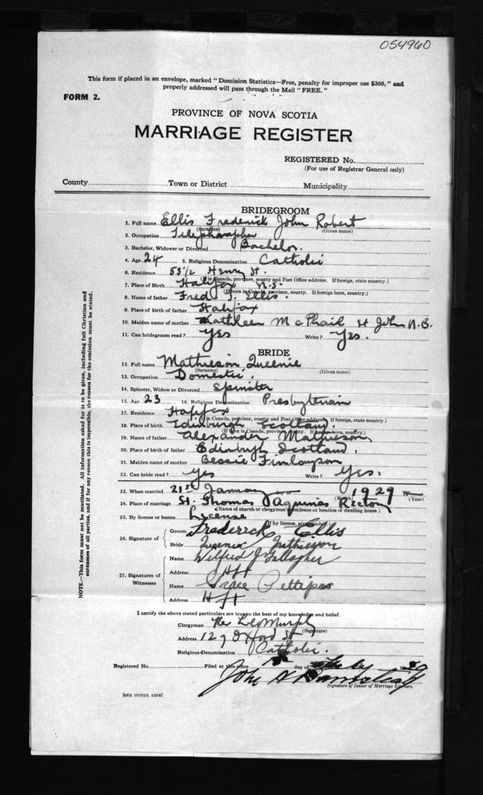 Registration: Year: 1929 number: 54960