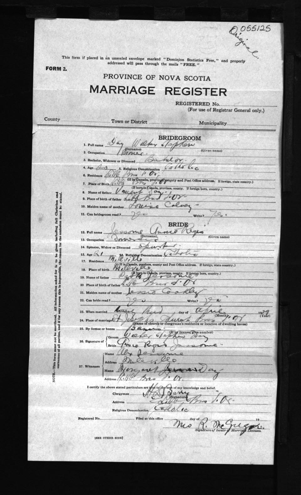 Registration: Year: 1929 number: 55125