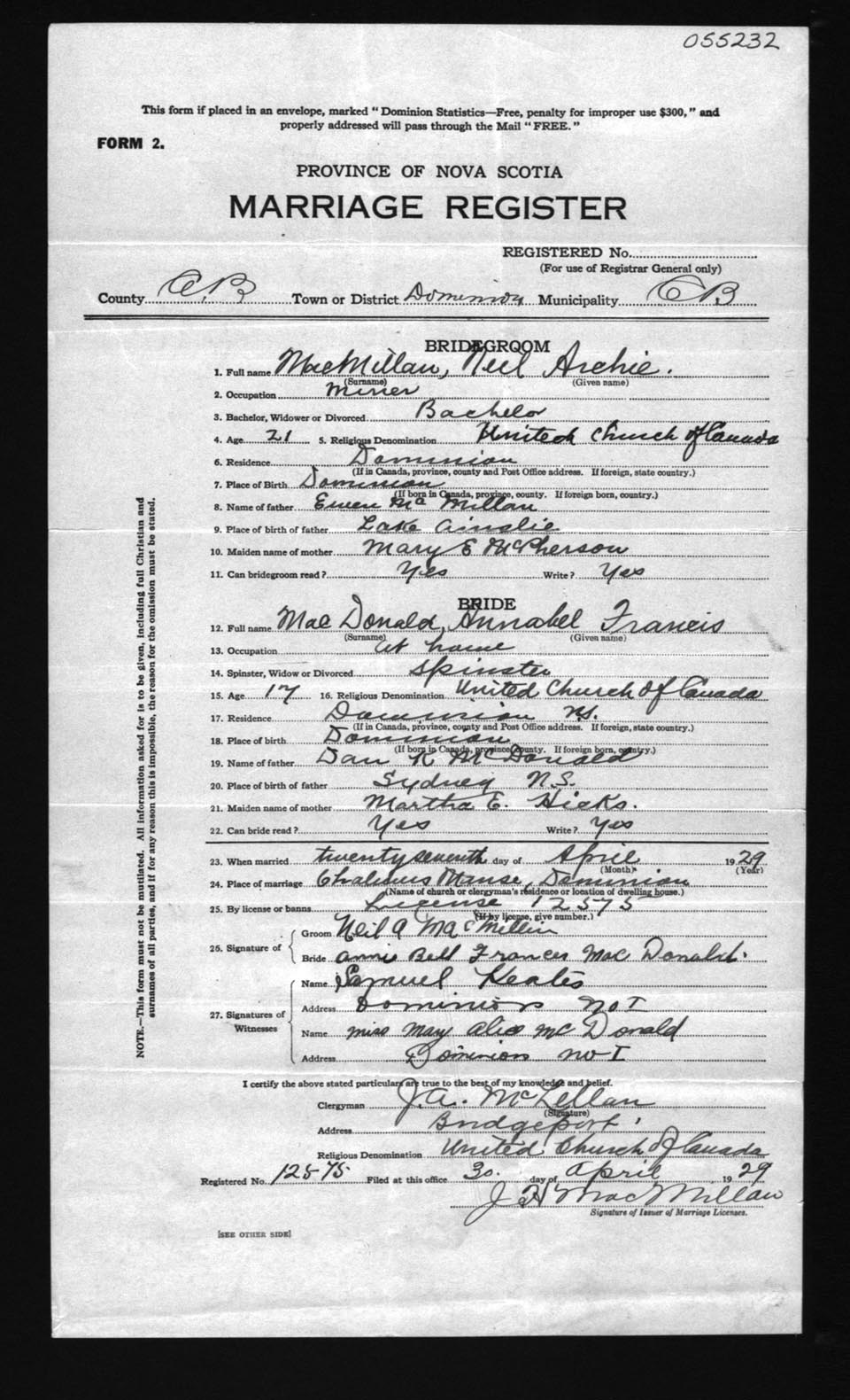 Registration: Year: 1929 number: 55232