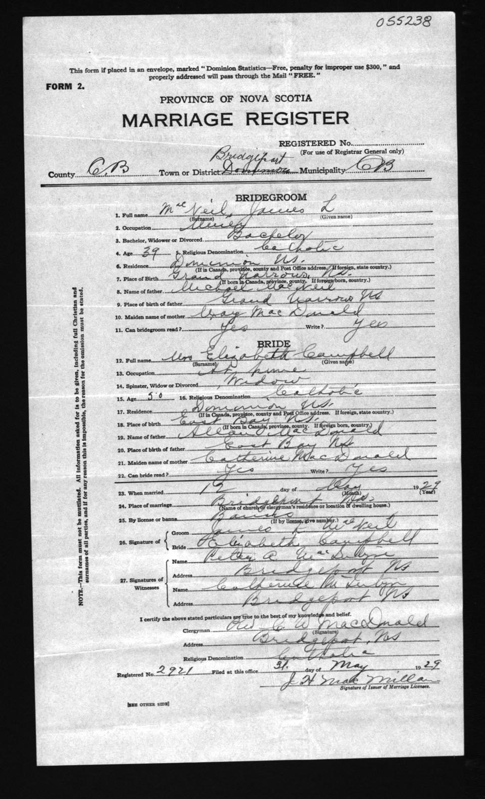 Registration: Year: 1929 number: 55238