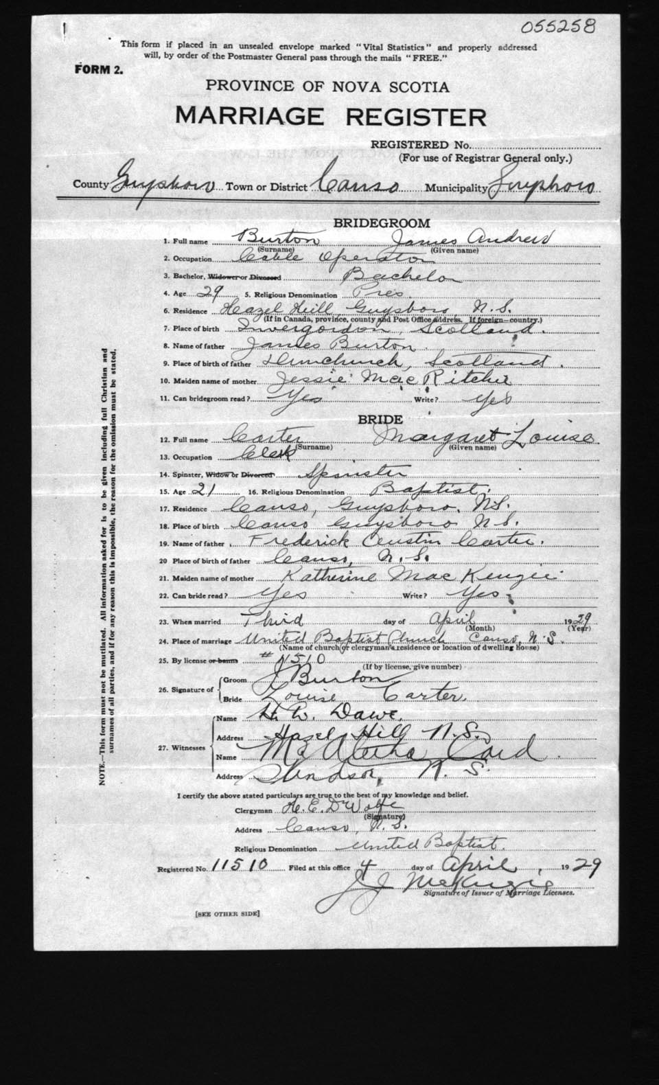 Registration: Year: 1929 number: 55258