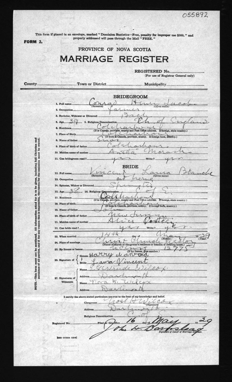 Registration: Year: 1929 number: 55892