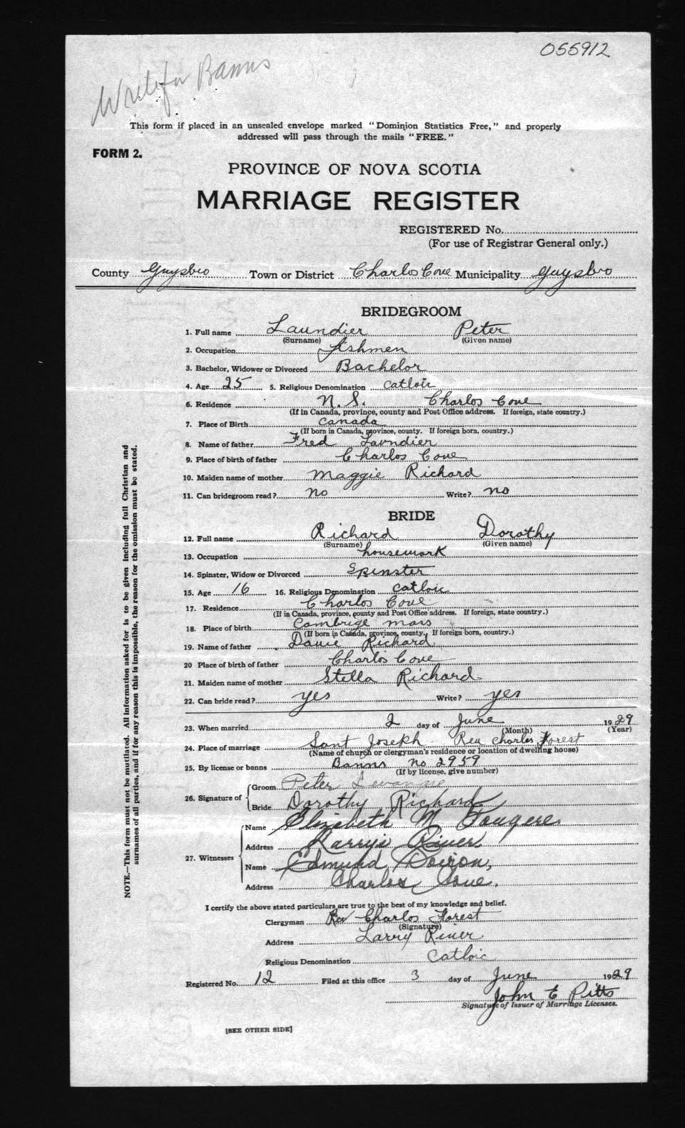 Registration: Year: 1929 number: 55912