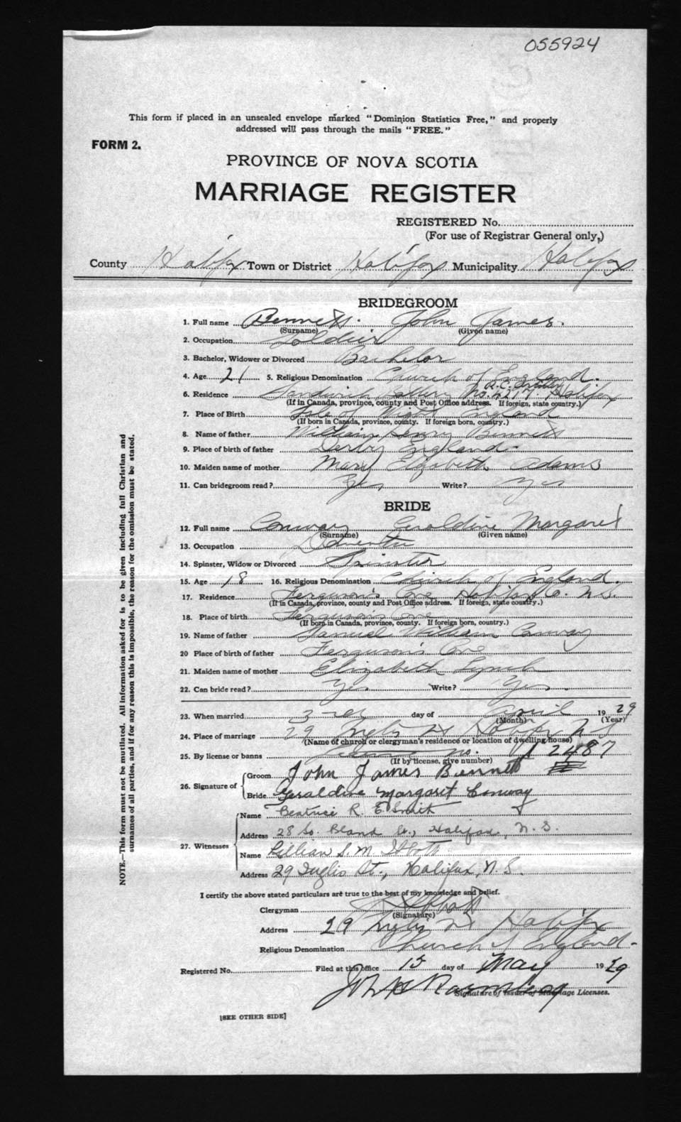 Registration: Year: 1929 number: 55924