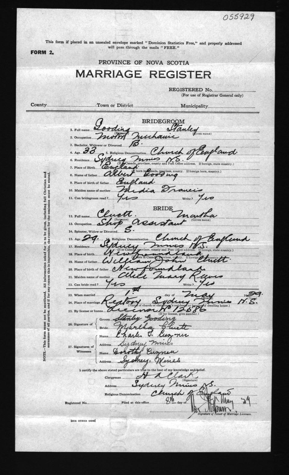 Registration: Year: 1929 number: 55929