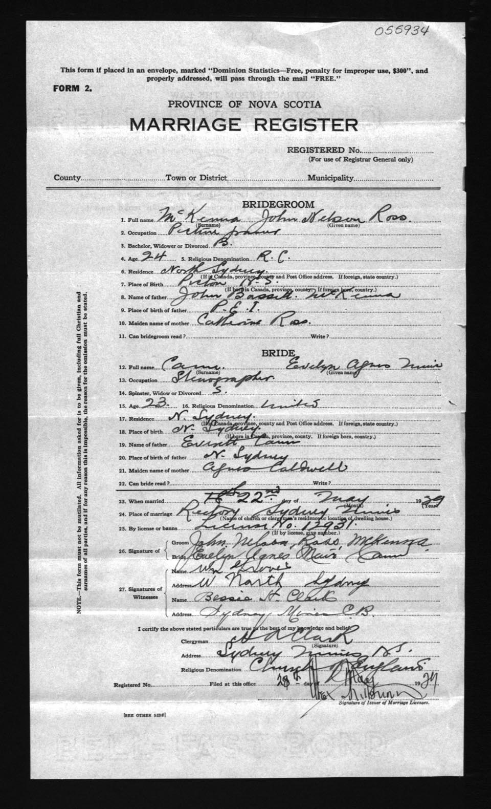 Registration: Year: 1929 number: 55934