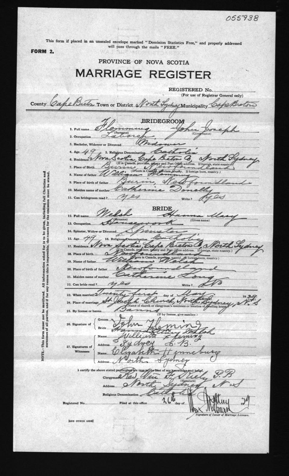 Registration: Year: 1929 number: 55938