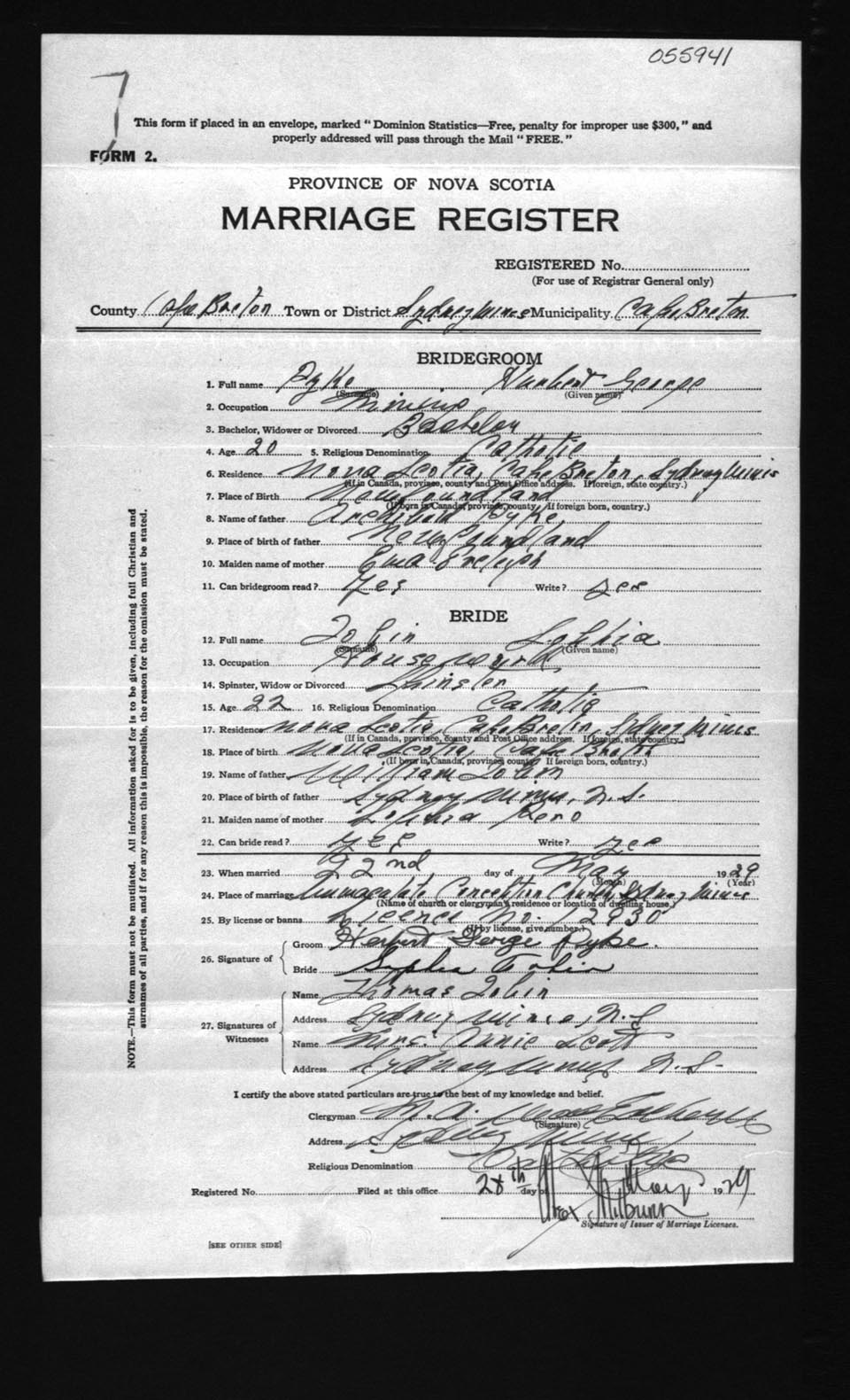 Registration: Year: 1929 number: 55941