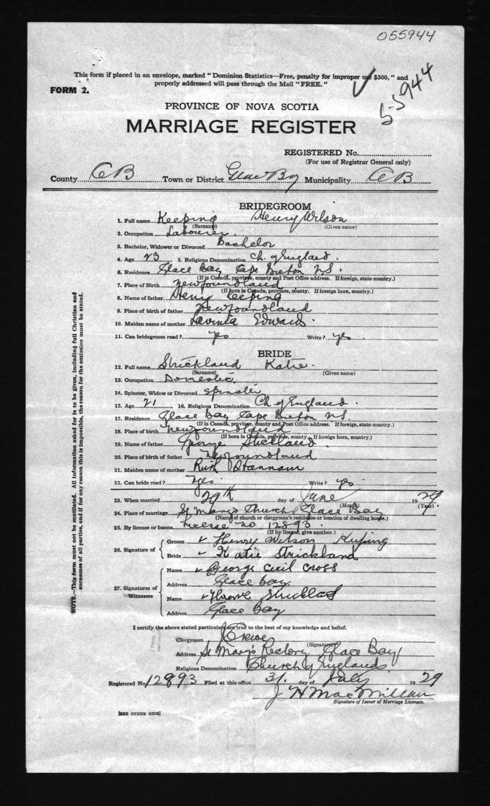 Registration: Year: 1929 number: 55944