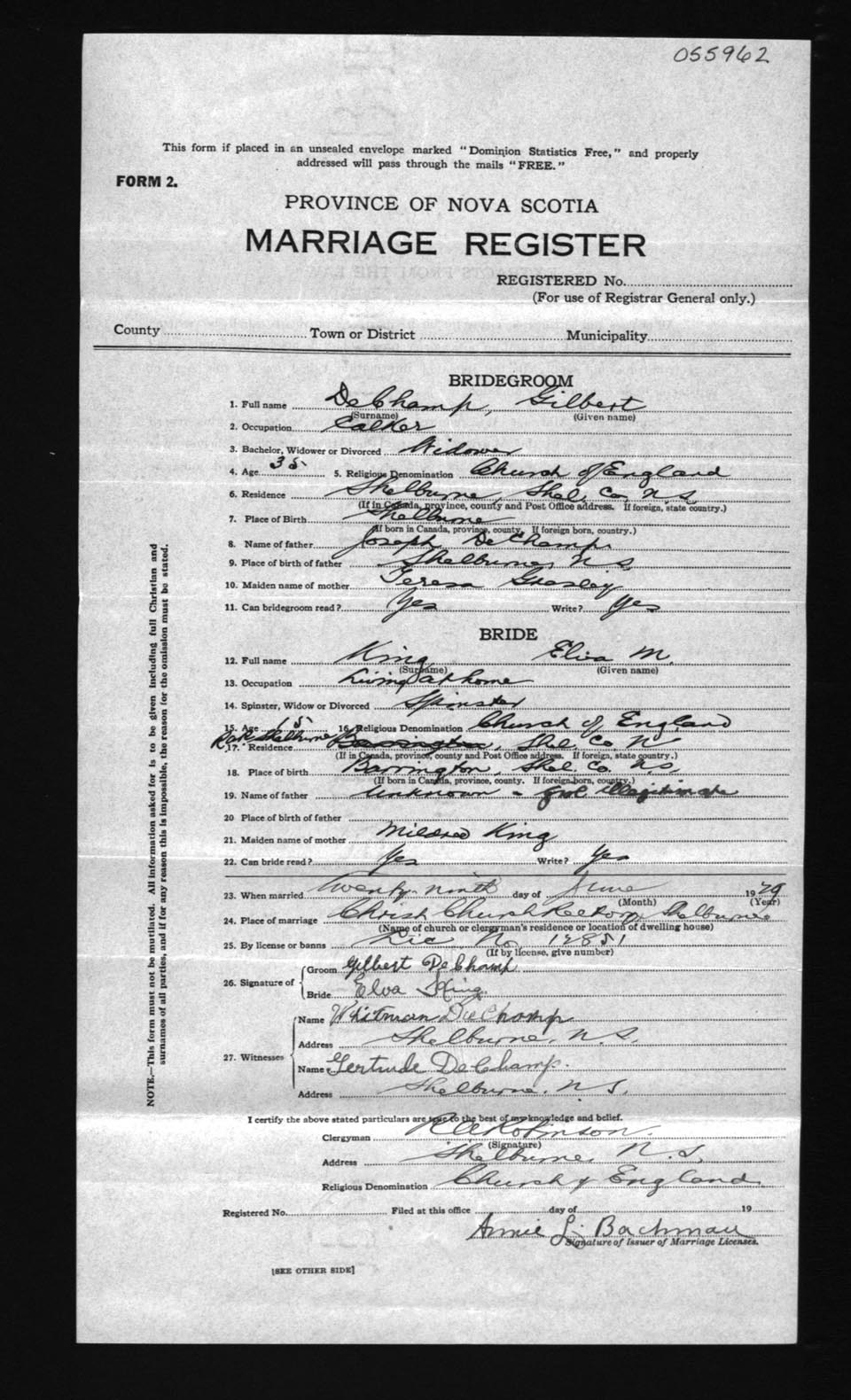 Registration: Year: 1929 number: 55962