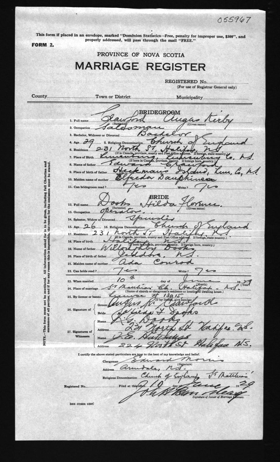 Registration: Year: 1929 number: 55967