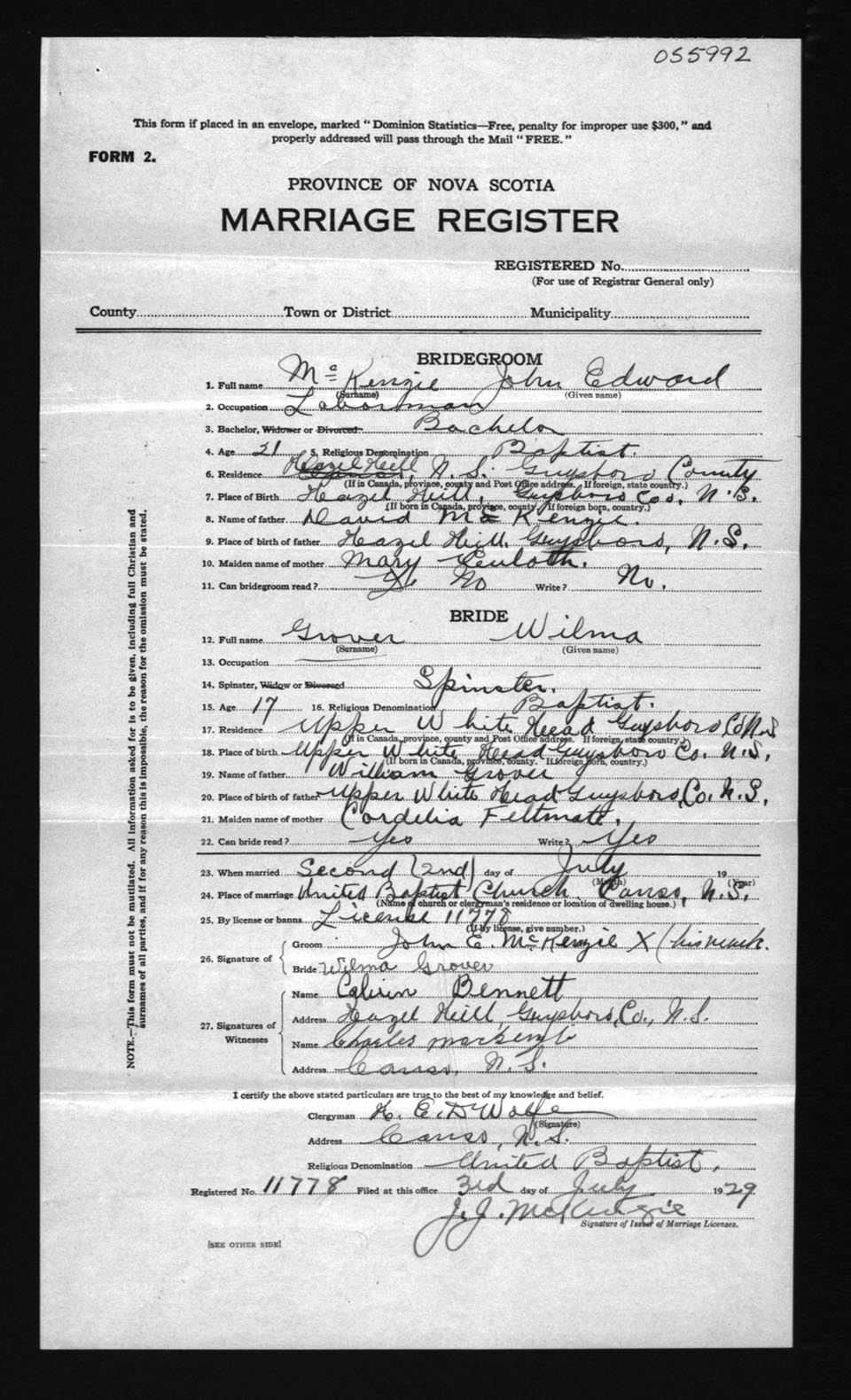 Registration: Year: 1929 number: 55992