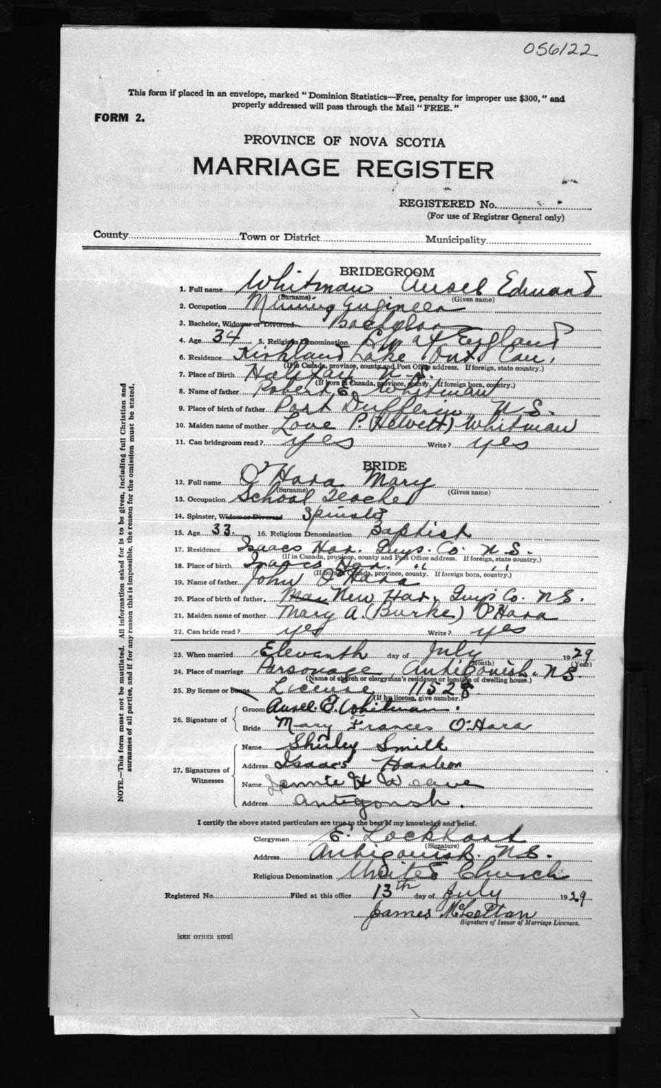 Registration: Year: 1929 number: 56122