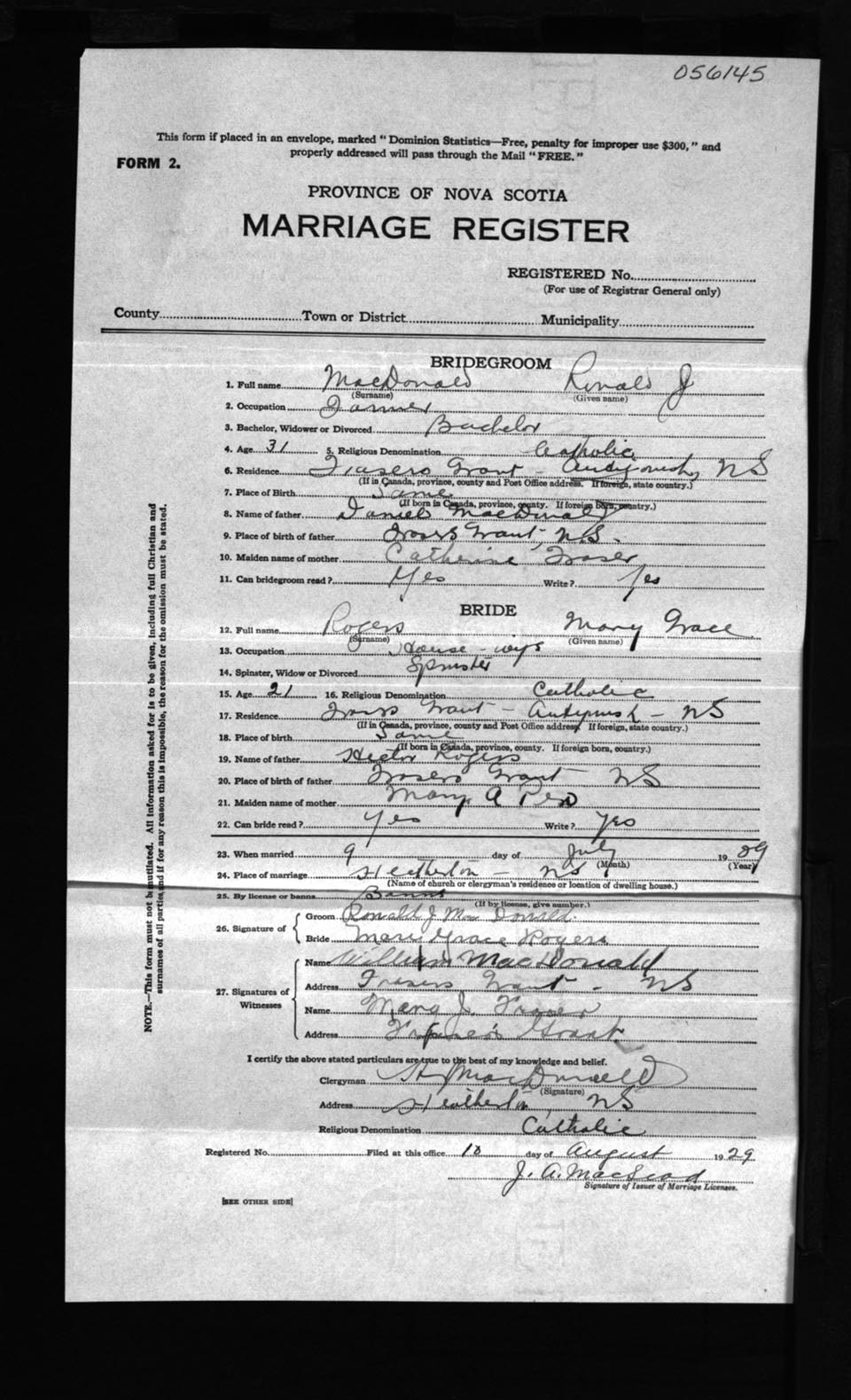 Registration: Year: 1929 number: 56145