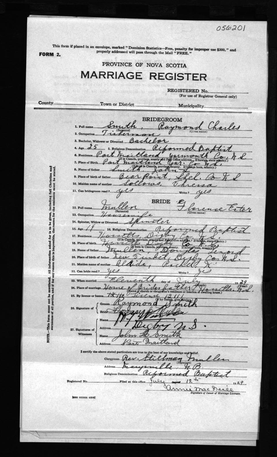 Registration: Year: 1929 number: 56201