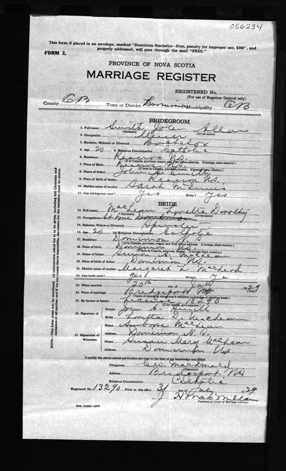 Registration: Year: 1929 number: 56234