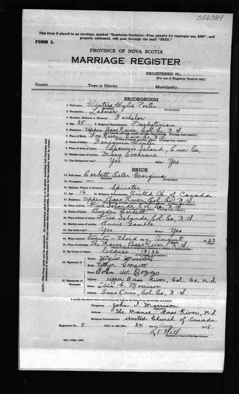 Registration: Year: 1929 number: 56389