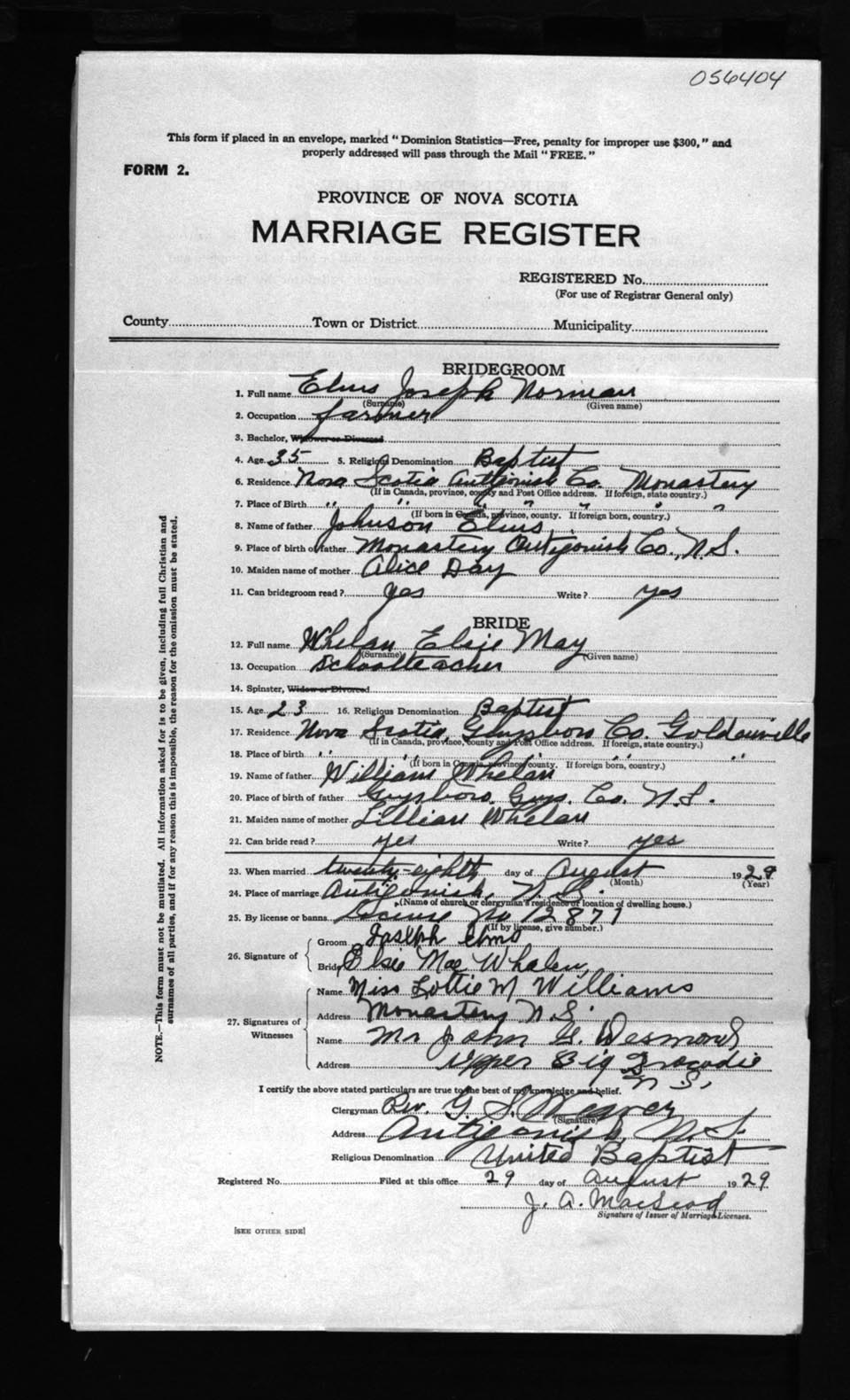 Registration: Year: 1929 number: 56404
