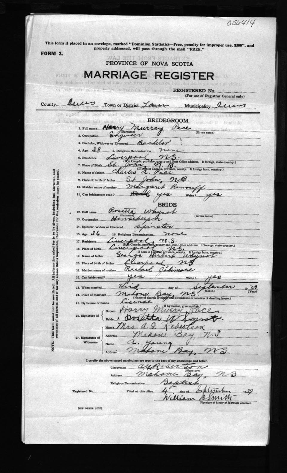 Registration: Year: 1929 number: 56414