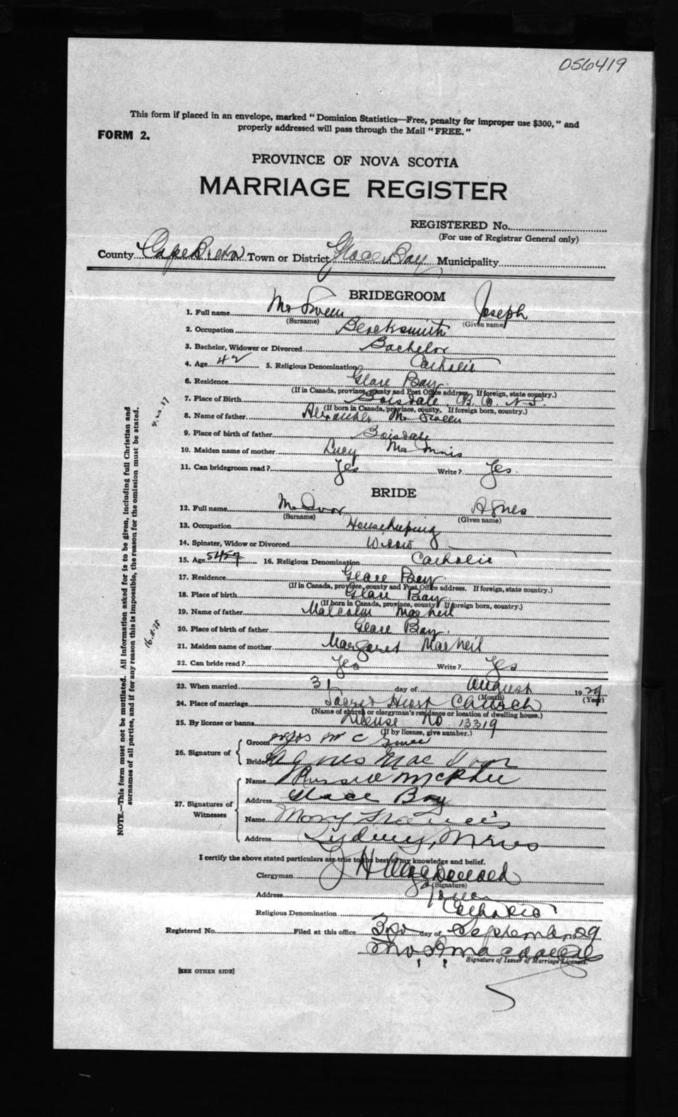 Registration: Year: 1929 number: 56419