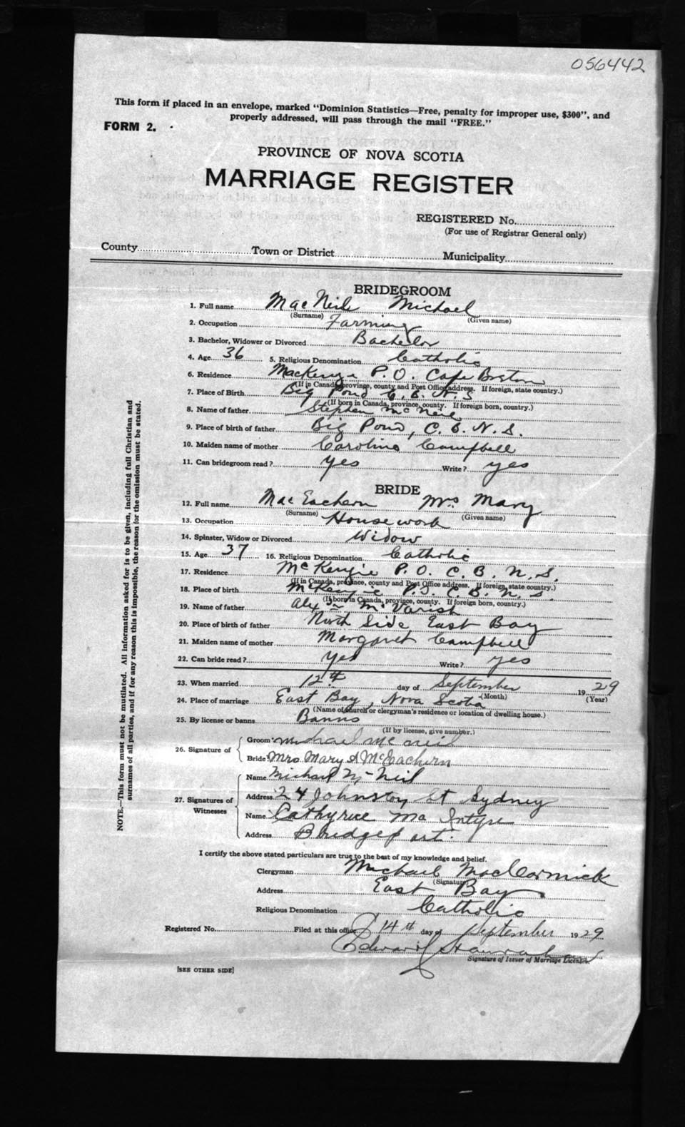 Registration: Year: 1929 number: 56442