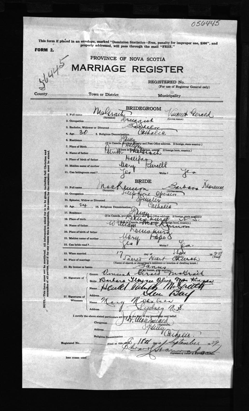 Registration: Year: 1929 number: 56445