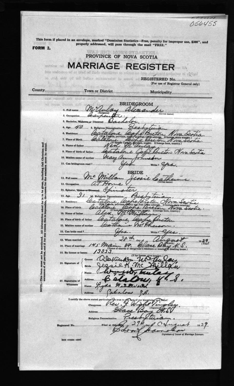Registration: Year: 1929 number: 56455