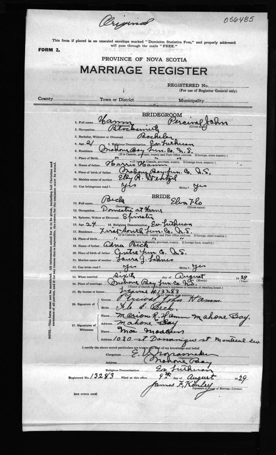 Registration: Year: 1929 number: 56485