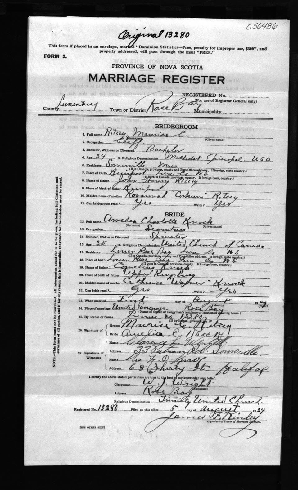 Registration: Year: 1929 number: 56486