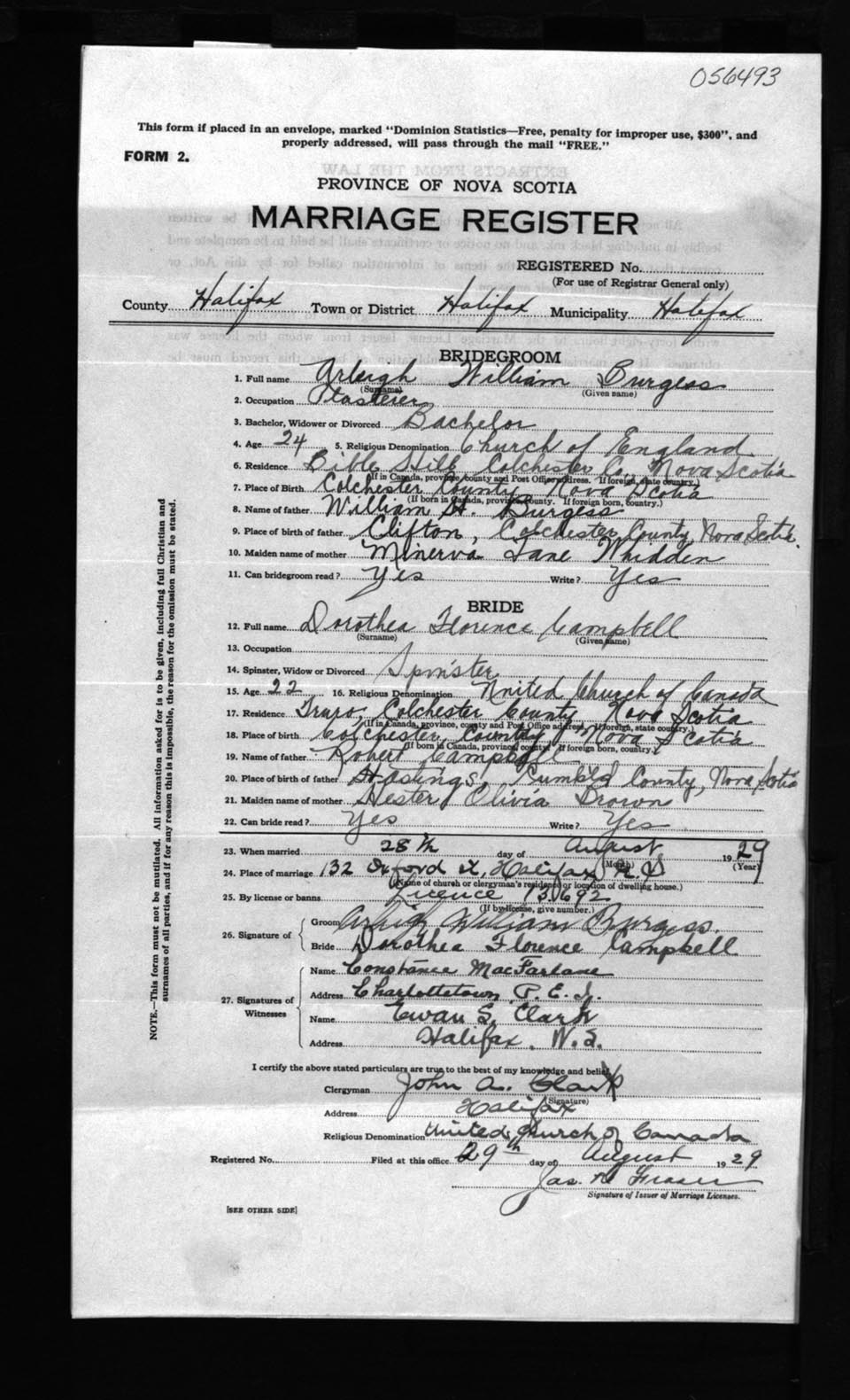 Registration: Year: 1929 number: 56493