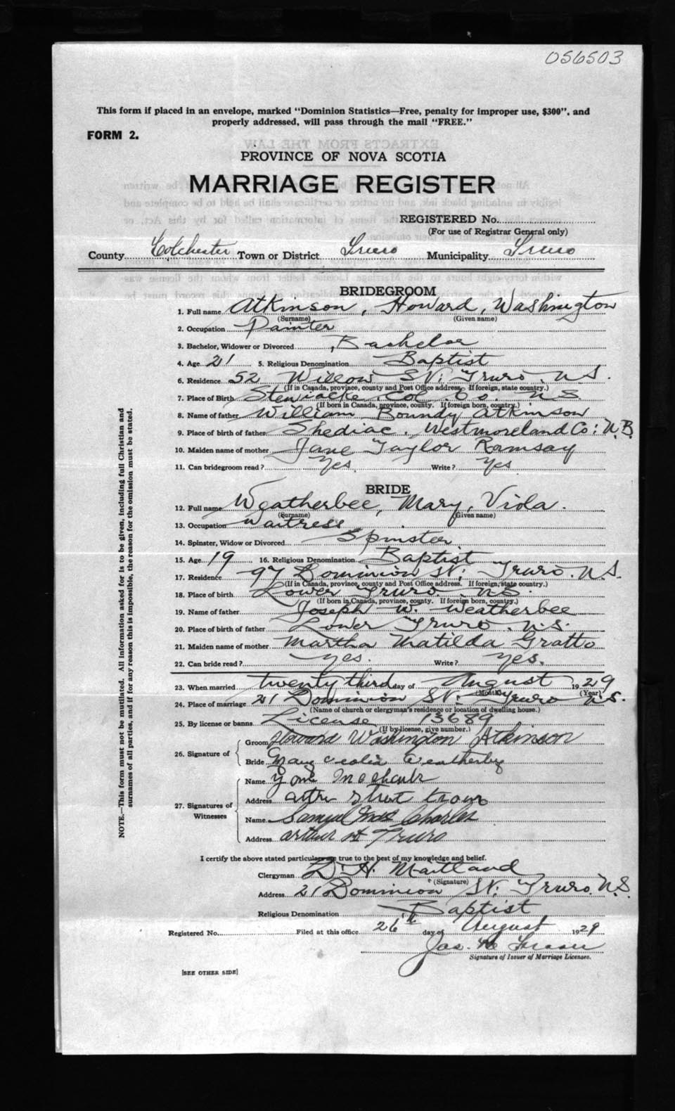 Registration: Year: 1929 number: 56503